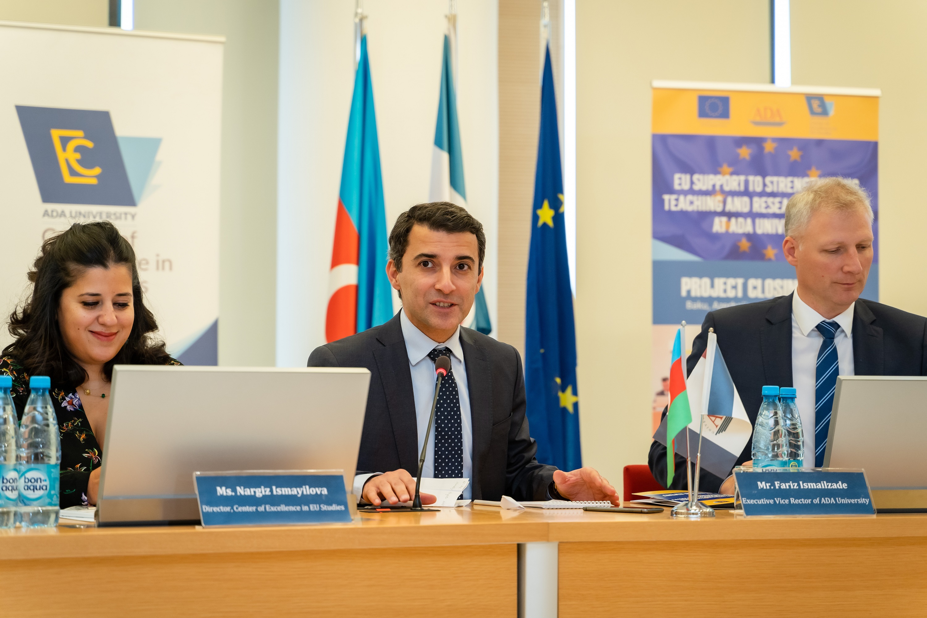 The event has been attended Head of European Union Delegation to Azerbaijan, H.E. Kestutis Jankauskas, Rector of ADA University, Ambassador Hafiz Pashayev, Executive Vice Rector of ADA University, Mr. Fariz Ismayilzade and other representatives of ADA University management, academia and staff, civil servants and industry representatives, partners of the Center of Excellence in EU Studies.