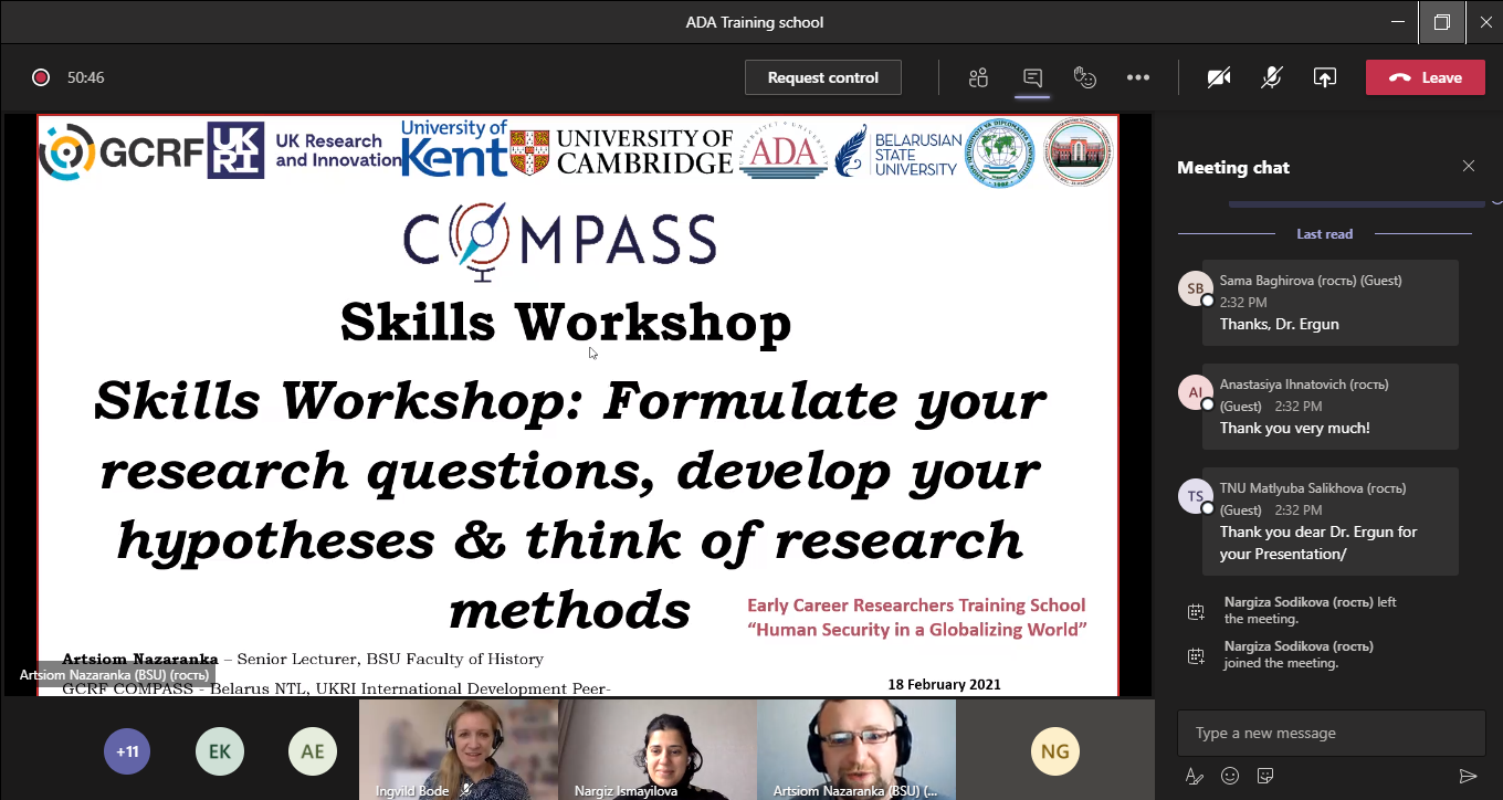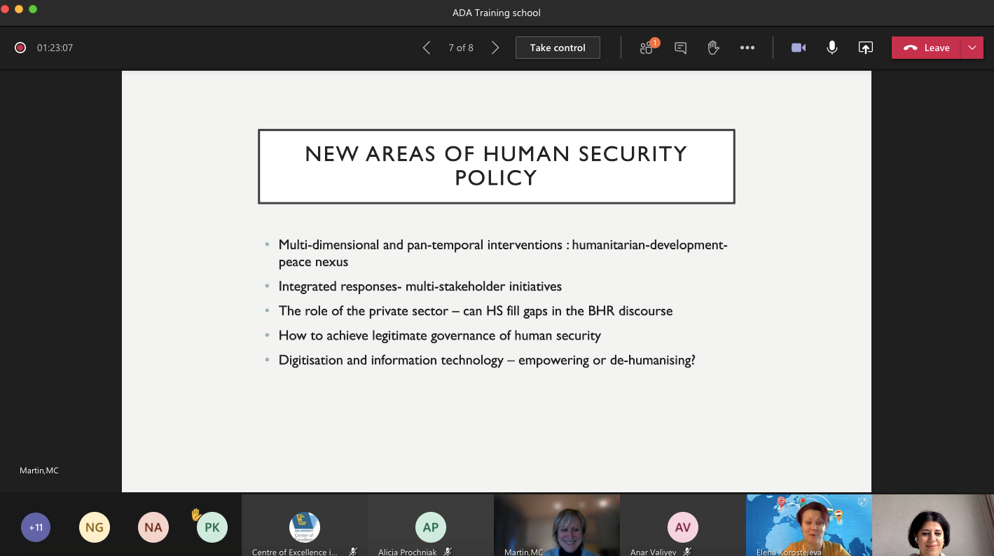The 3rd Early Career Researcher’s Training School (TS) on “Human Security in a Globalizing World” was organized and hosted between 15-19 February 2021, by ADA University’s Centre of Excellence in EU Studies under the aegis of the GCRF COMPASS Project and Jean Monnet Chair Dr Anar Valiyev. The TS has been tailored to offer an opportunity for research development, capacity building, exchange of ideas and network-building for PhD and postdoctoral students working in the field of security. Security phenomenon from broader approaches has been reviewed during the week, while considering security threats where the security landscape is influenced by and has possible implications across different sectors such as the economy, the environment, geopolitics, migration, gender equality.